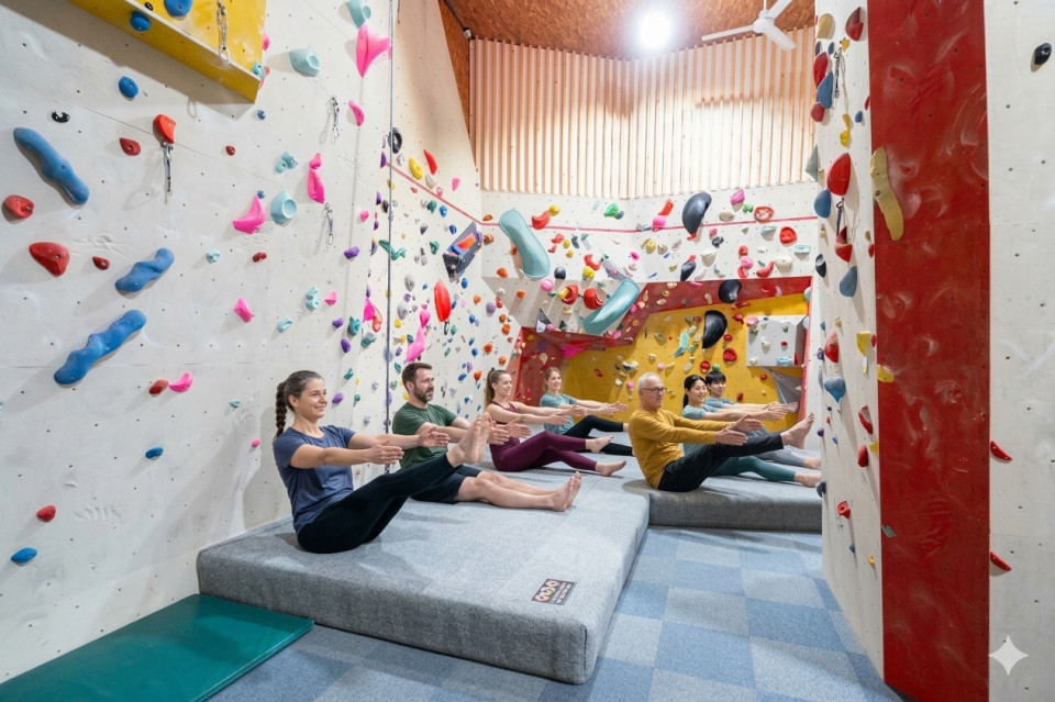 Mitbringen: Yoga-Matte, bequeme Sportkleidung, Handtuch, Wasserflasche, Kletterausrüstung (kann auch in der Halle ausgeborgt werden)